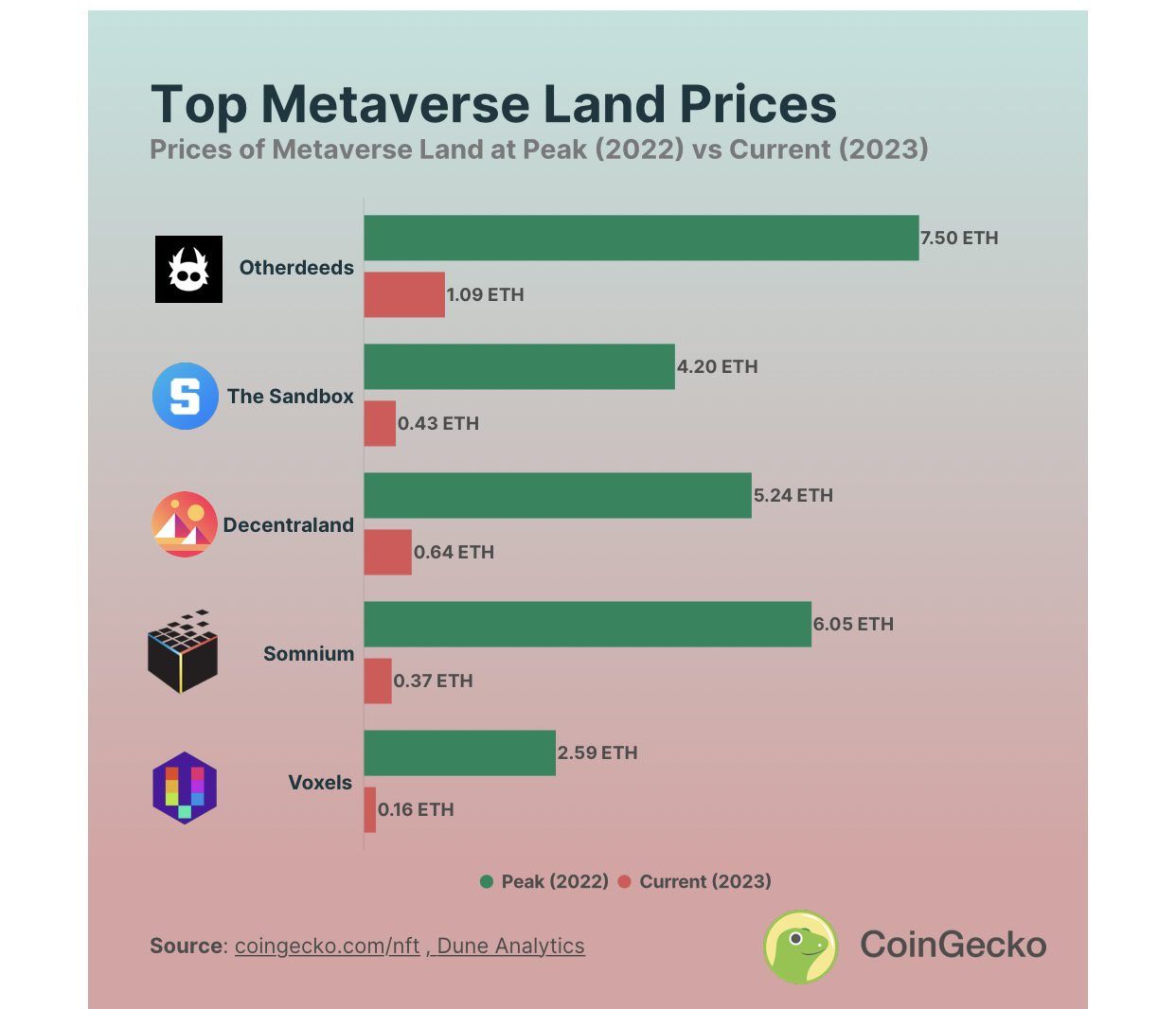 Likewise, metaverse land in platforms like Otherdeeds, The Sandbox, Decentraland, Somnium, and Voxels have experienced substantial value depreciation of over 90% in the past year, according to a CoinGecko report.