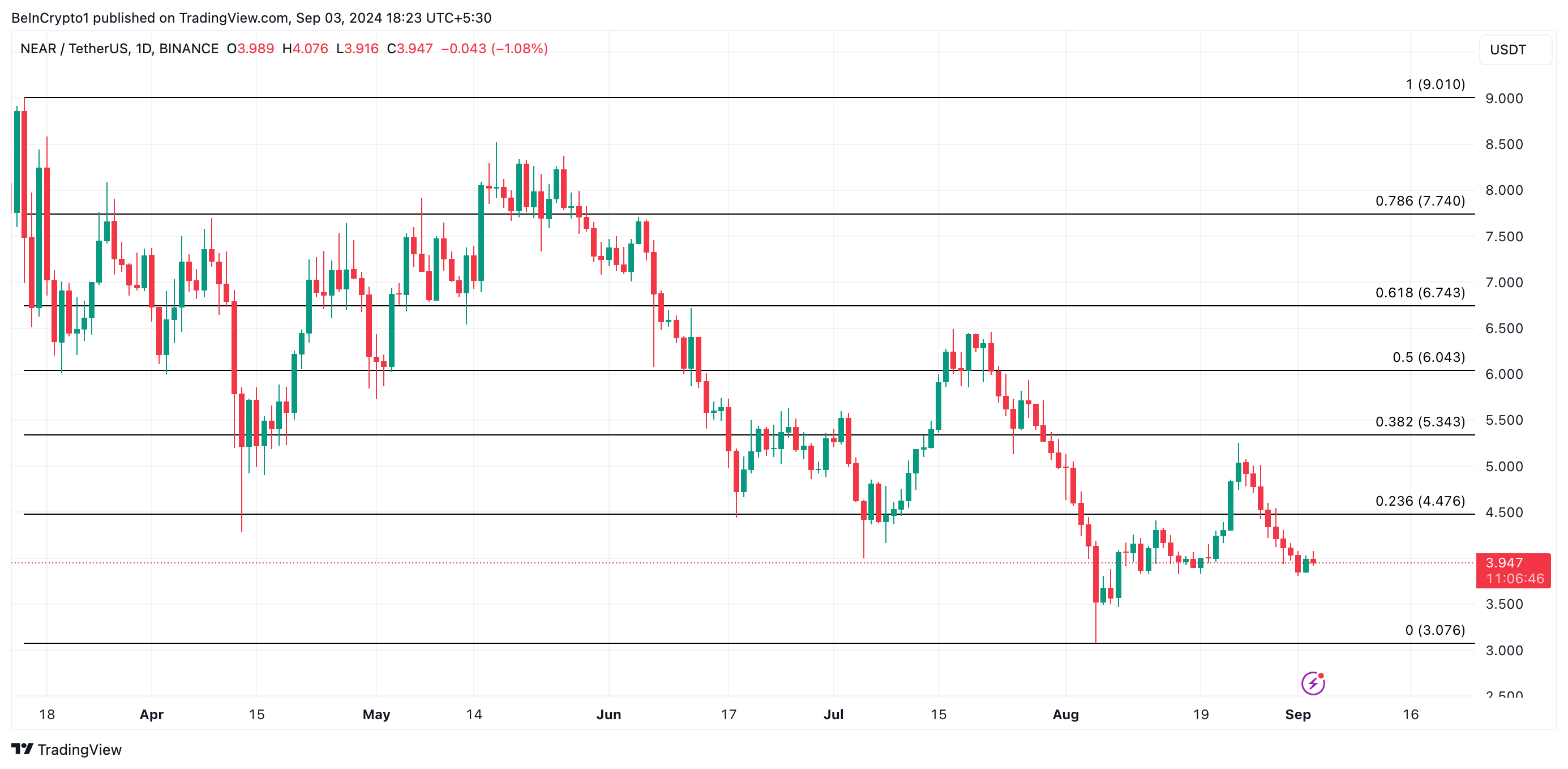 The value of NEAR, a leading AI-related cryptocurrency, has dropped by 16% over the past seven days. As of now, NEAR is trading at $3.94.
