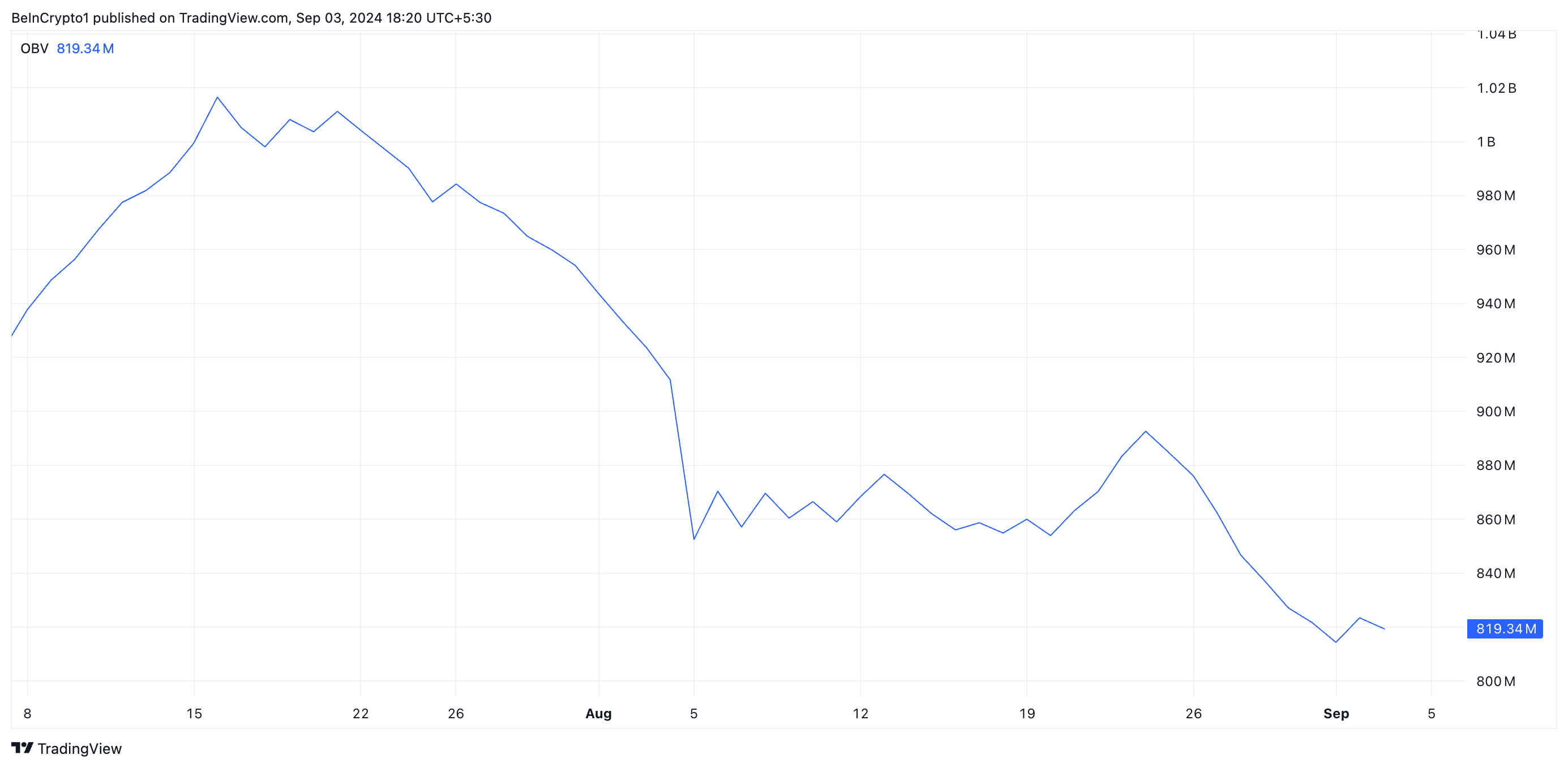 Further, NEAR’s On-Balance-Volume (OBV) is falling and has maintained that position since the price decline began on August 24. This indicator measures buying and selling pressure in an asset’s market.