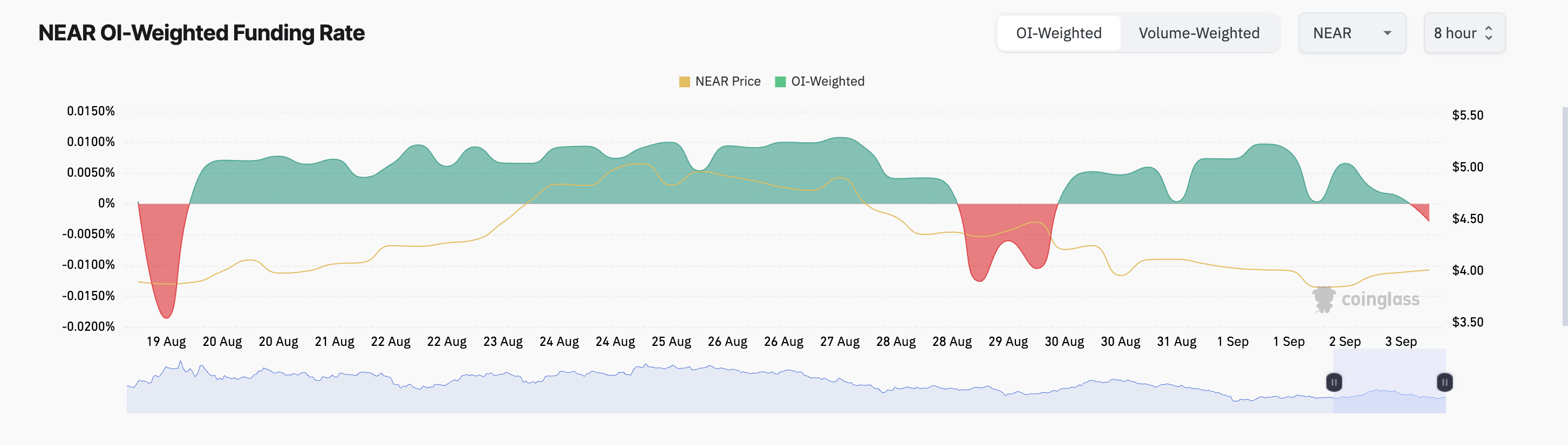 Since the downtrend began on August 24, NEAR’s futures traders have primarily opened long positions, as evidenced by its predominantly positive funding rate.