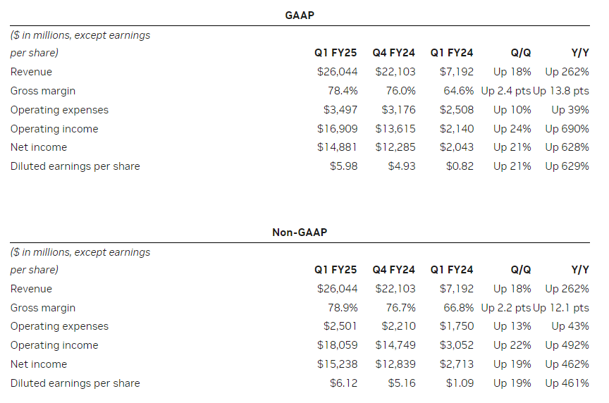 Nvidia repurchased $7.7 billion of shares during the quarter and paid $98 million in dividends. On the same day, Nvidia announced a 10-to-1 forward stock split to make stock ownership more accessible.