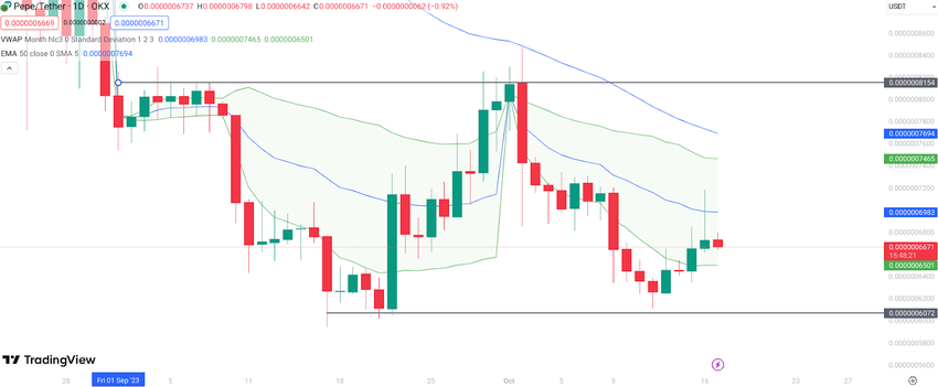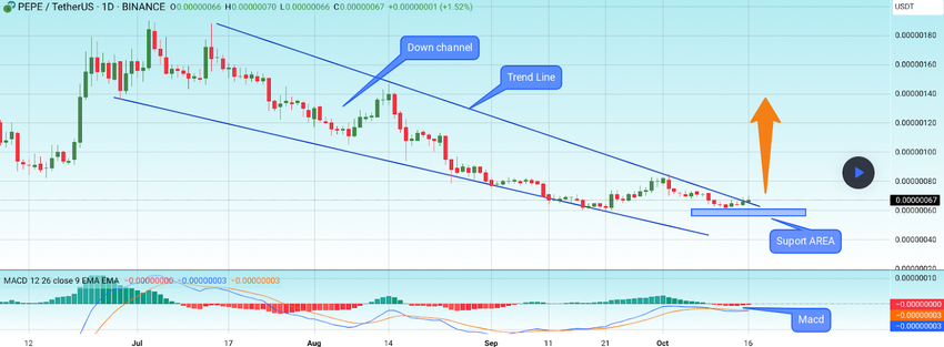 TradingView analyst CryptoAnalystSignal just posted a bullish trade idea, which is gathering notoriety. The analysis points out that Pepe has formed a falling wedge on the daily timeframe and noted it found support at its 22 Sept. level of $0.00000061. This has created a double bottom, a strong indication of a reversal.