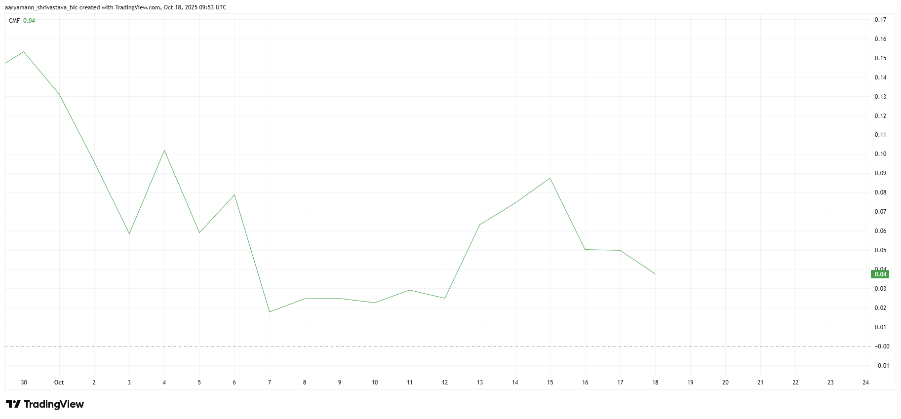 While momentum has softened slightly, the overall liquidity structure supports a steady recovery. If the CMF maintains its position above zero, it could provide the foundation for renewed buying activity.