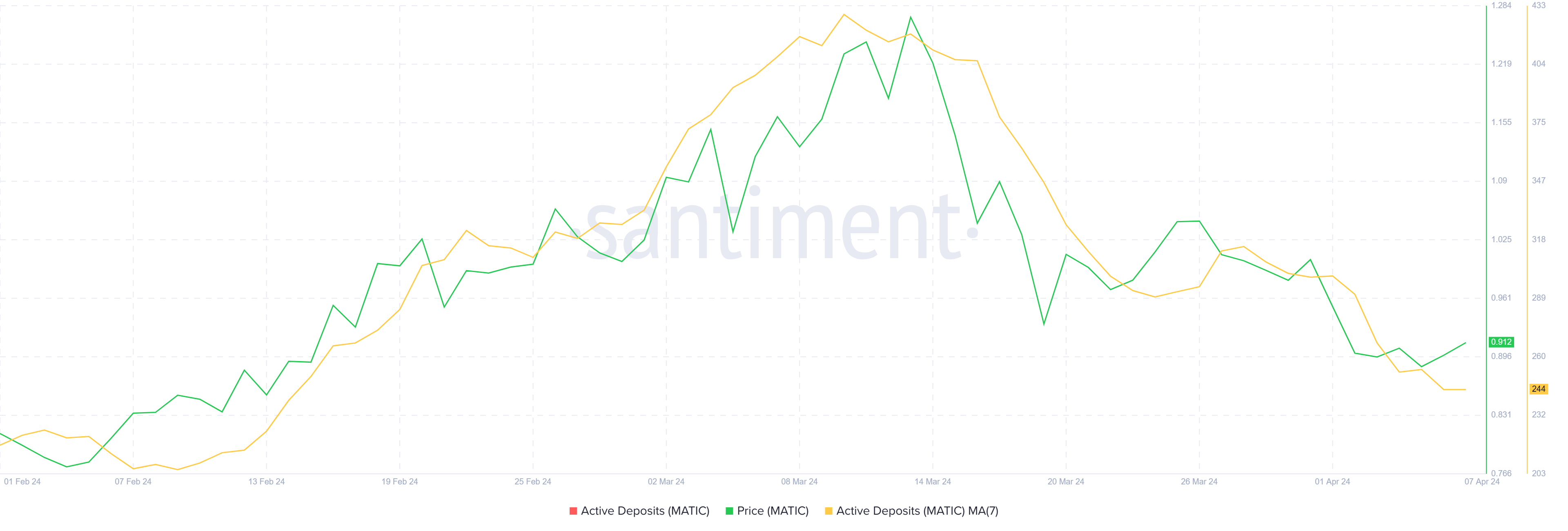Given Polygon’s active deposits are declining, the possibility of price reversal is inclining.