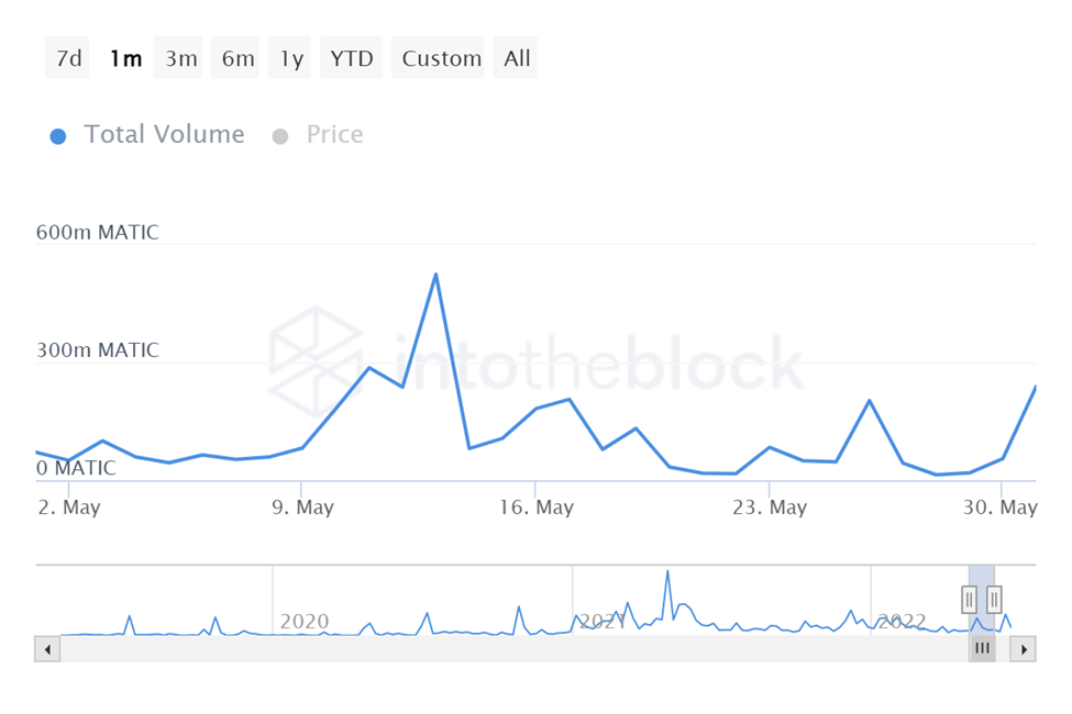 This corresponded with a large transaction volume which was in the region of 524.26 million MATIC at the same price.