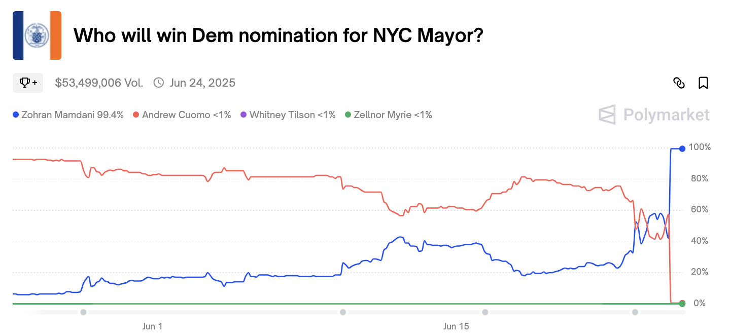 Polymarket bets failed to predict Zohran Mamdani’s upset win in the New York mayoral primary, listing Governor Cuomo as the favorite. Between this and its inability to predict the new Pope, some are questioning its success rate.