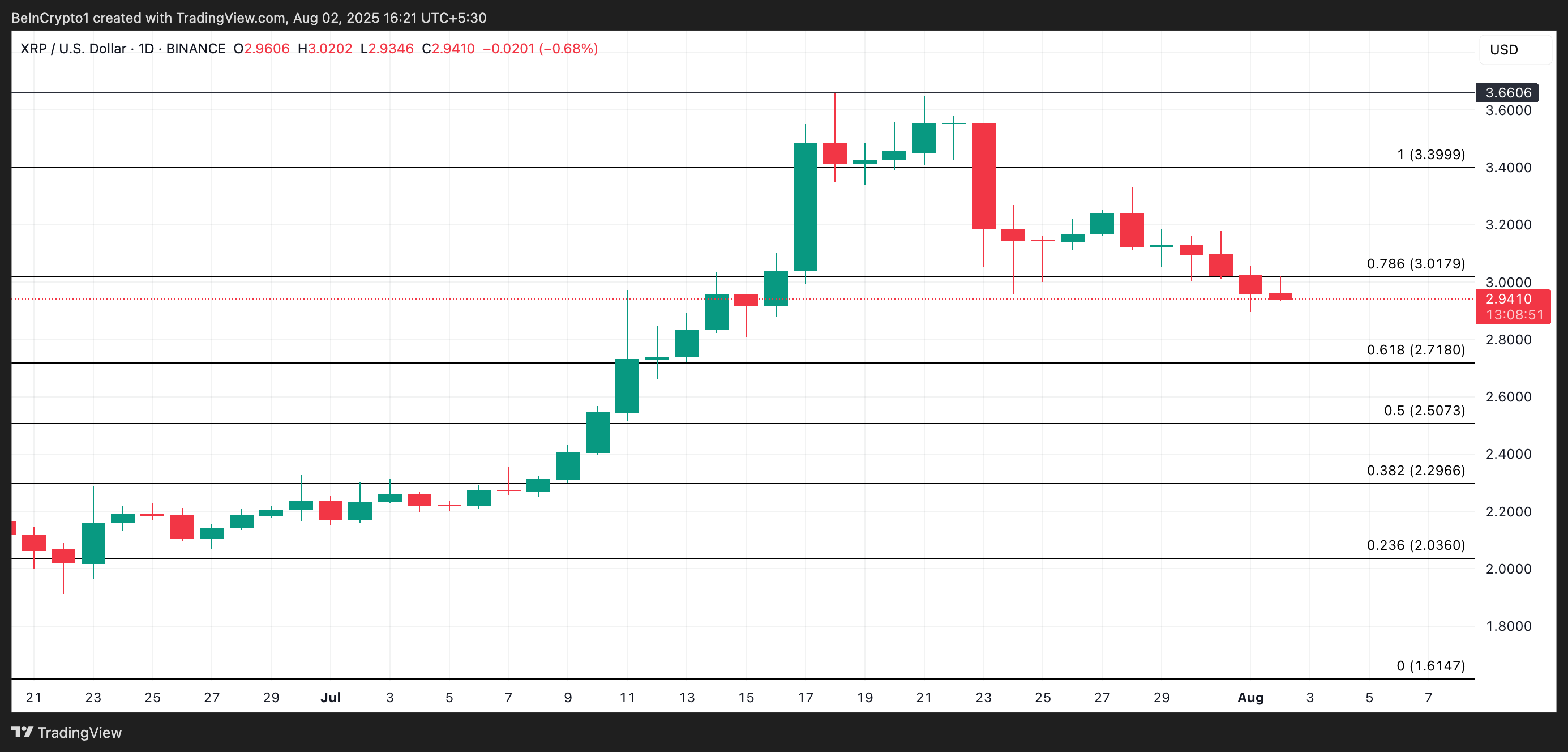 The trend is no different among spot market participants. According to Coinglass data, XRP has recorded negative netflows exceeding $222 million since July 29, signaling persistent sell-side dominance and weak buy-side pressure.