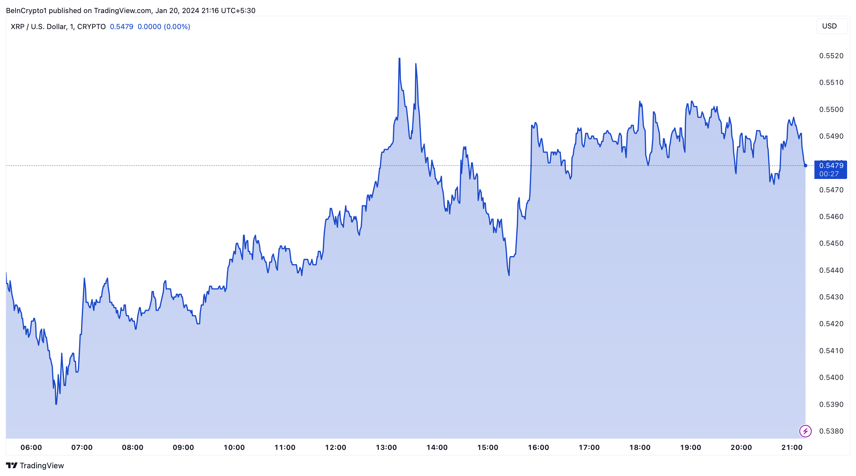 Meanwhile, the XRP token experienced minimal impact despite trading predominantly in negative territory over the past week. The digital asset witnessed a 5% decline during this timeframe, reaching a low of $0.526. However, it has subsequently rebounded to $0.5484.