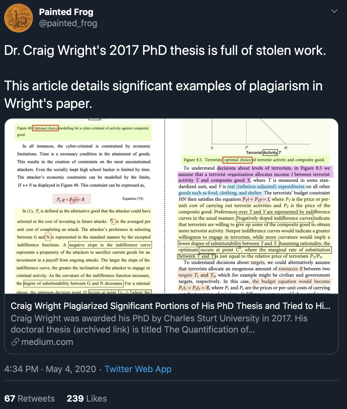 SponsoredThe Medium post compares other screenshots of Wright’s doctoral thesis and the plagiarized sources.