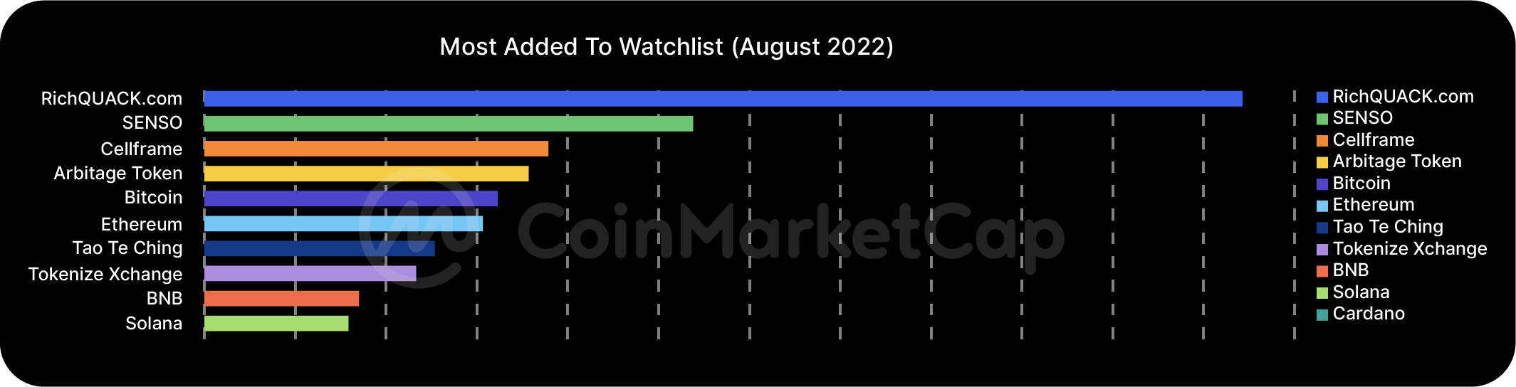 As the global crypto market maintained its rangebound momentum the market’s eyes turned to certain small-cap projects. Recent Coin Market Cap data presented that tokens like RichQUACK and SENSO topped the list of most added crypto tokens to the watchlist on CMC.
