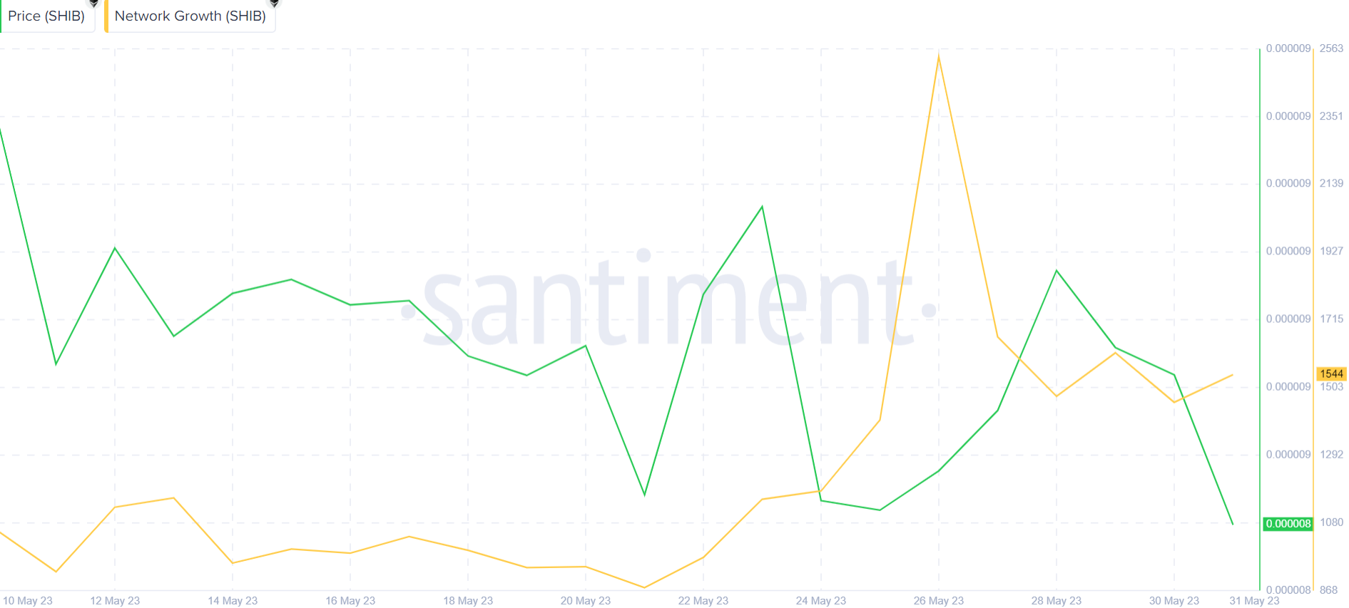 Shiba Inu (INU) price had an underwhelming performance in May 2023. On-chain data shows that SHIB has been attracting new demand in recent weeks. Could this translate into significant price gains for SHIB?