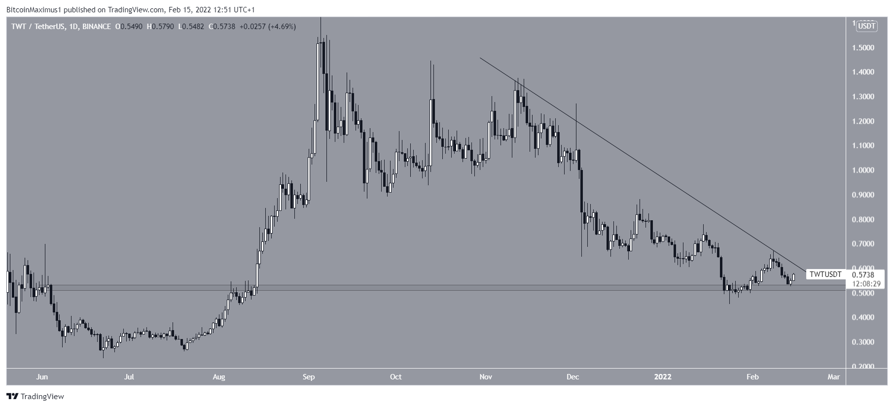 TWT has been following a descending resistance line since Nov 2021. While doing so, it fell to a low of $0.45 on Jan 24.
