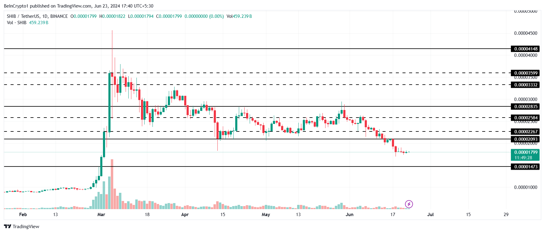 Shiba Inu’s price, trading at $0.00001799, is already below the critical support of $0.00002093. As investors withdraw their investments, the meme coin could now suffer the consequences of the decline.