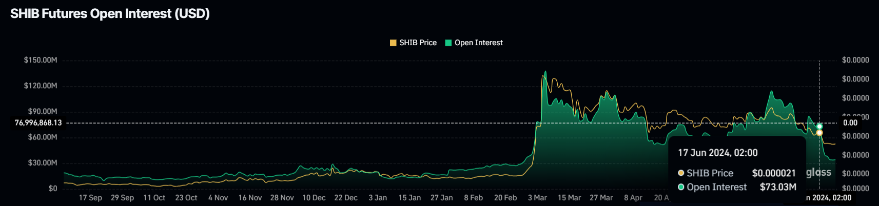 In addition to the Chaikin Money Flow, Shiba Inu’s Open Interest has significantly declined. Open Interest represents the total number of outstanding derivative contracts and is a key metric for gauging market sentiment and potential future price movements.