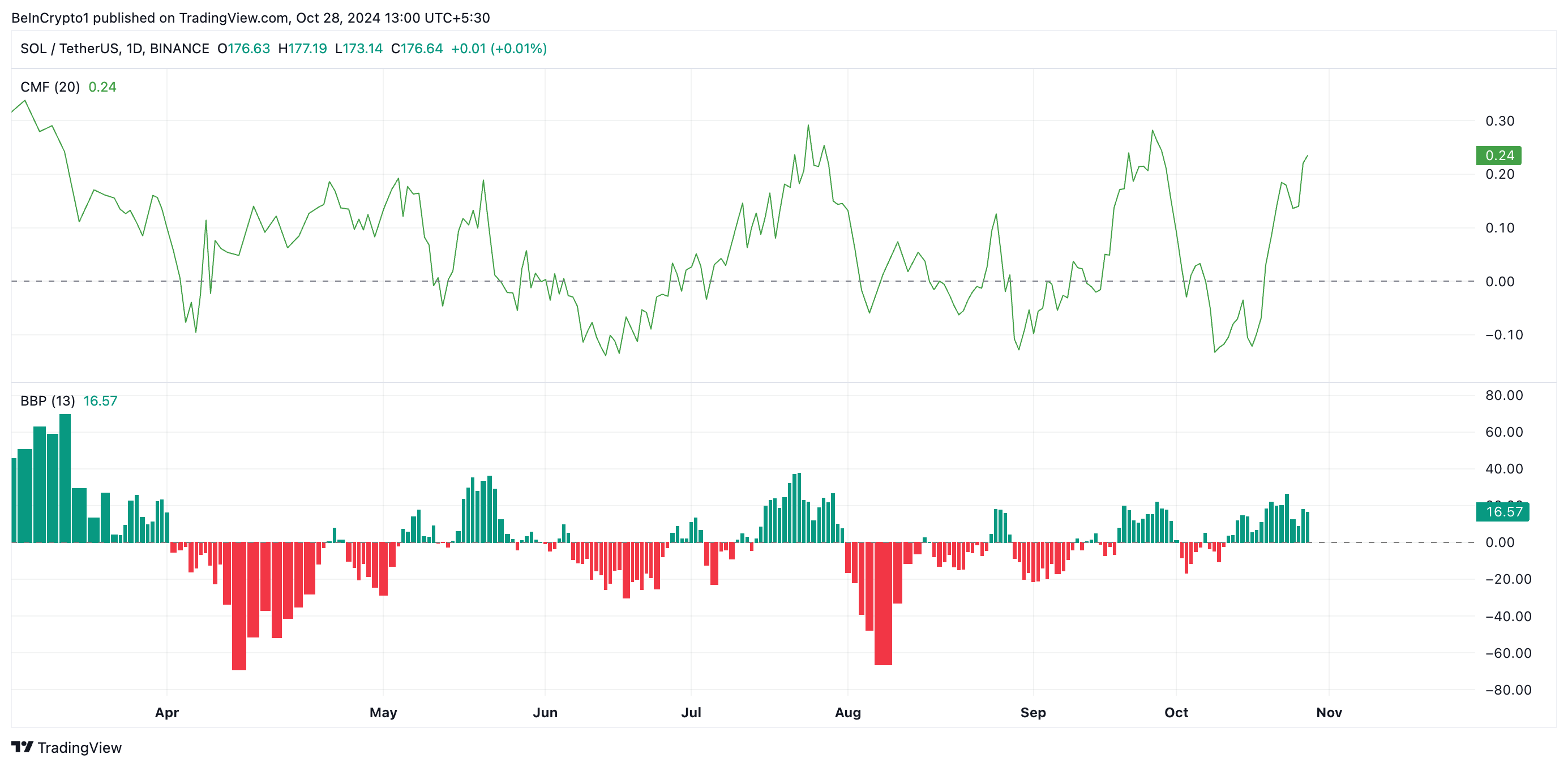 SponsoredThe CMF indicator measures money flow into and out of an asset’s market. A positive CMF reading indicates that buying activity outweighs selling pressure, signaling increased demand. Additionally, it confirms that trading volume actively supports the asset’s upward price momentum.