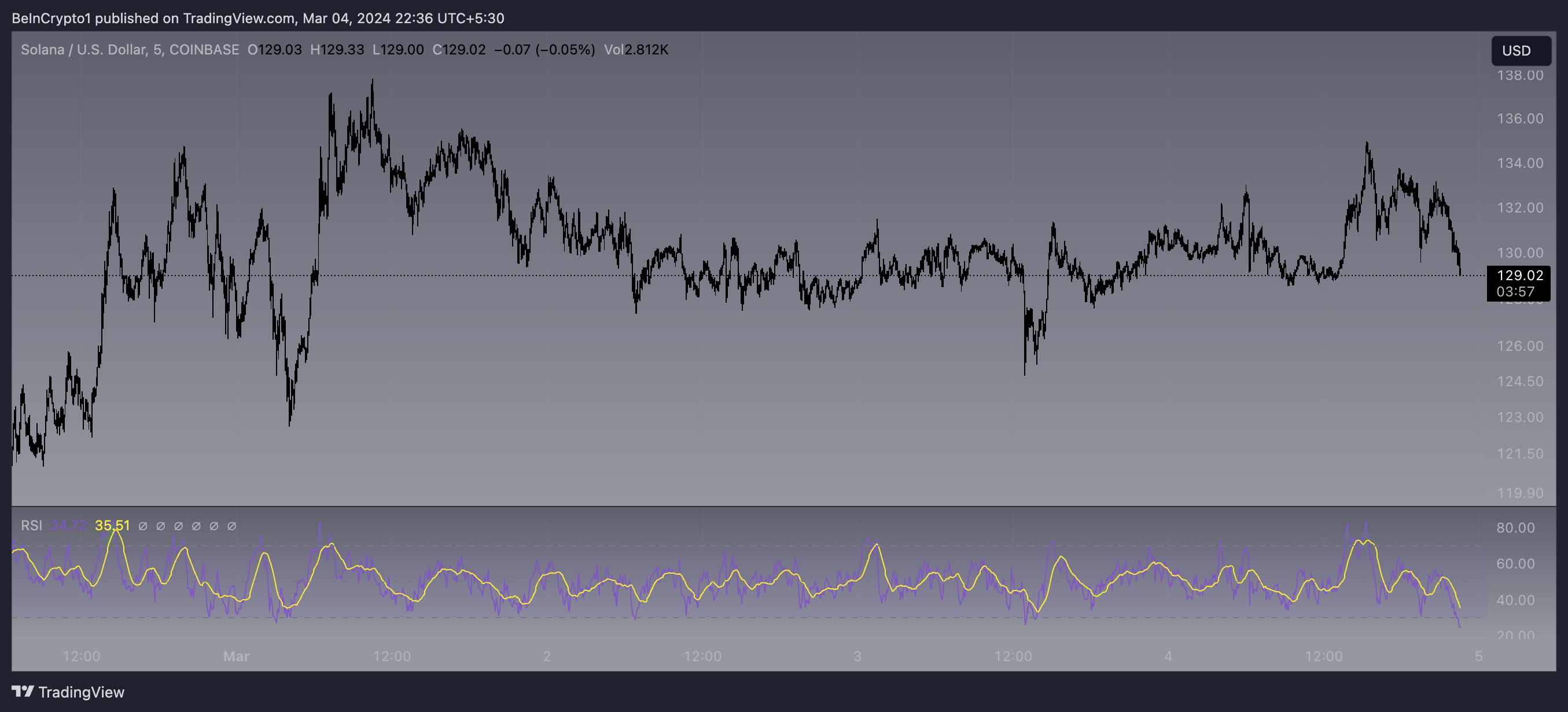 A recent look at the 5-minute SOL/USD chart indicates a potential resistance level at $133. If the price breaks above this point, the bullish trend could continue.