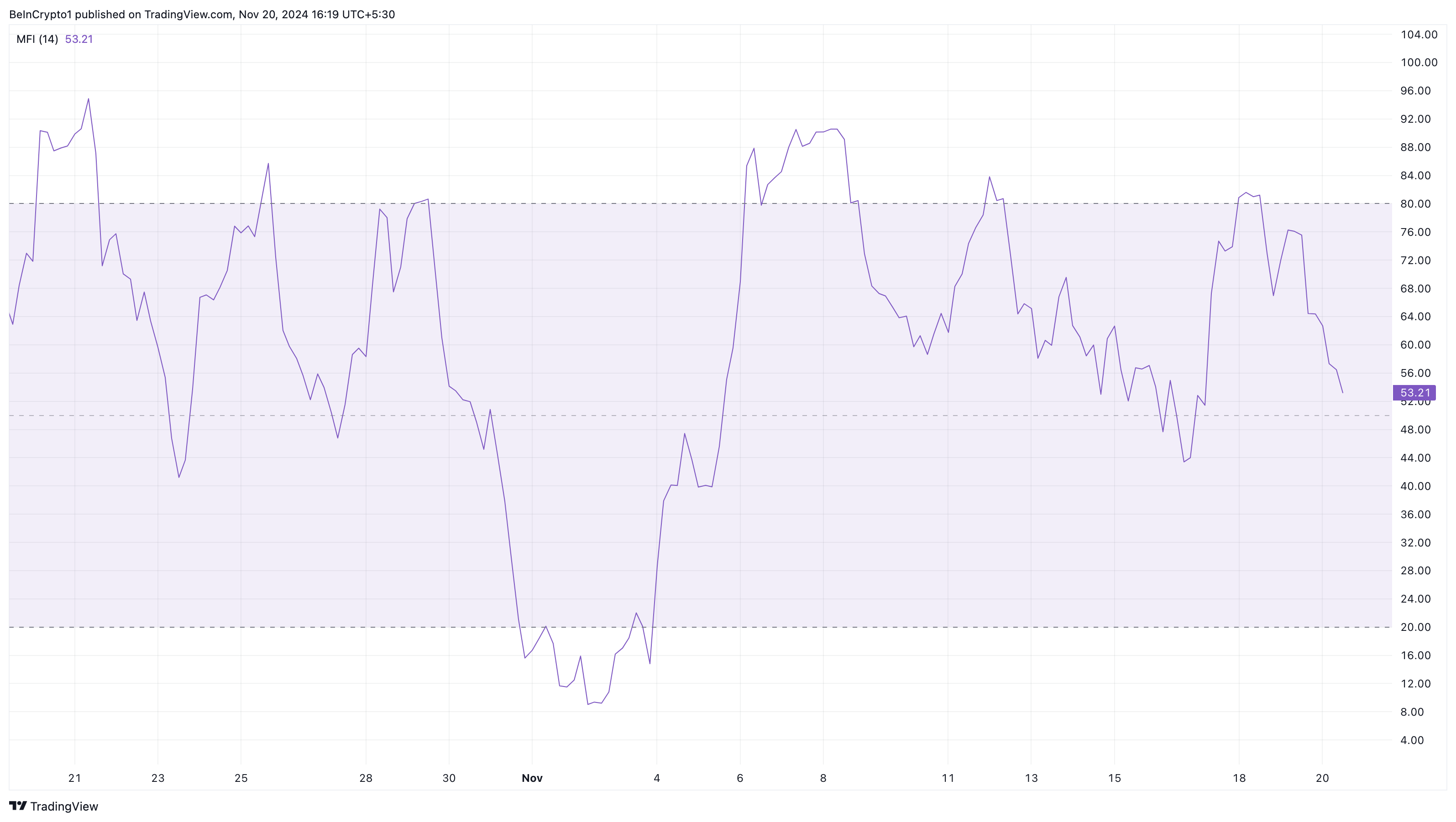 Furthermore, the Money Flow Index (MFI) adds weight to this bearish outlook. Notably, the MFI is a technical indicator that uses price and volume to measure the capital flowing in and out of a cryptocurrency.