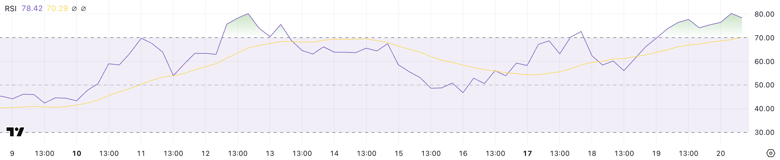 Sonic’s RSI is currently at 78.4, a significant increase from 56 just two days ago. It has remained above 70 for more than a day, indicating strong upward momentum.