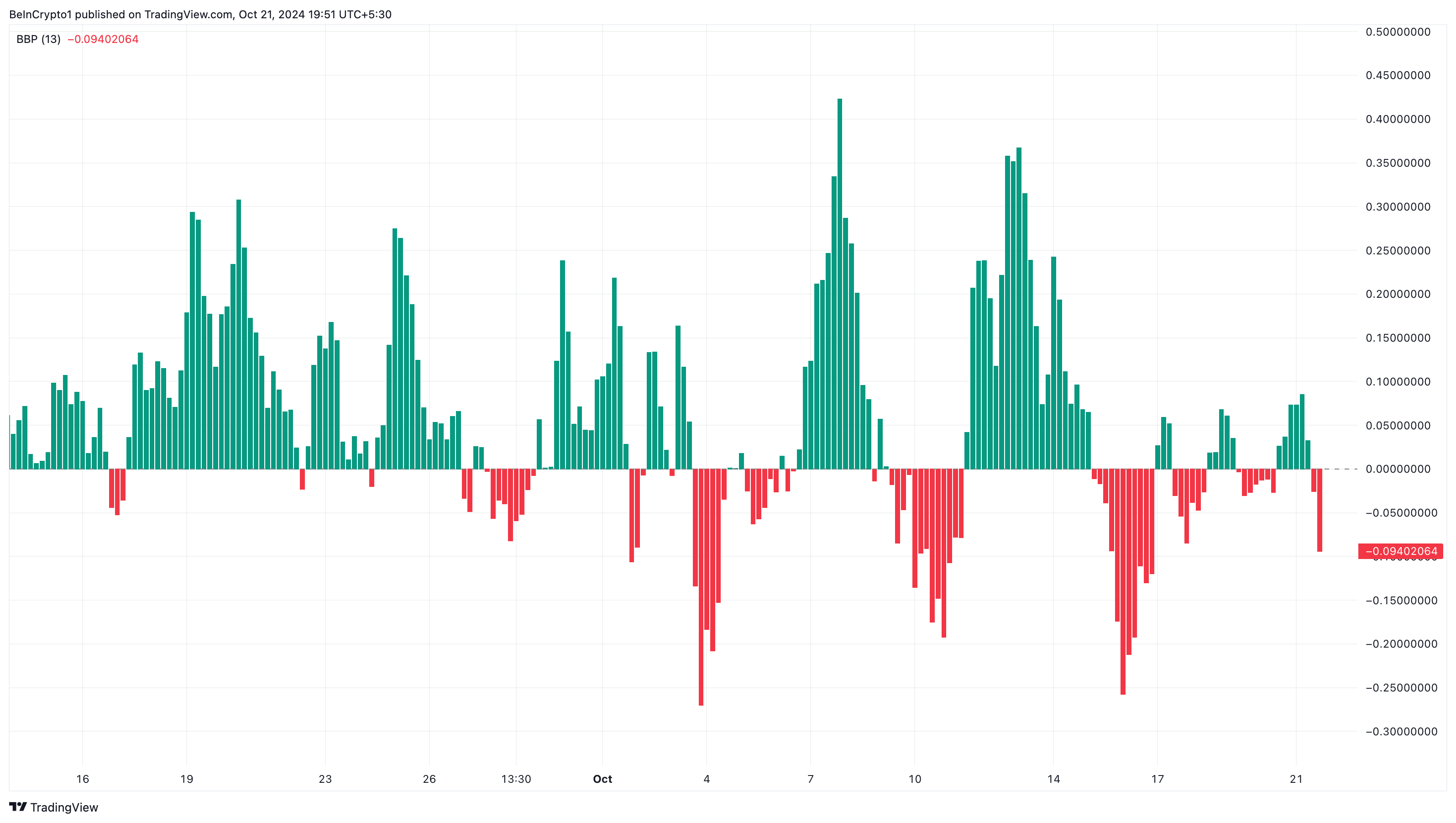 Additionally, the same timeframe reveals that the Bull Bear Power (BBP) has turned negative. The BBP is a technical oscillator that measures the relative strength of buyers versus sellers in the market.