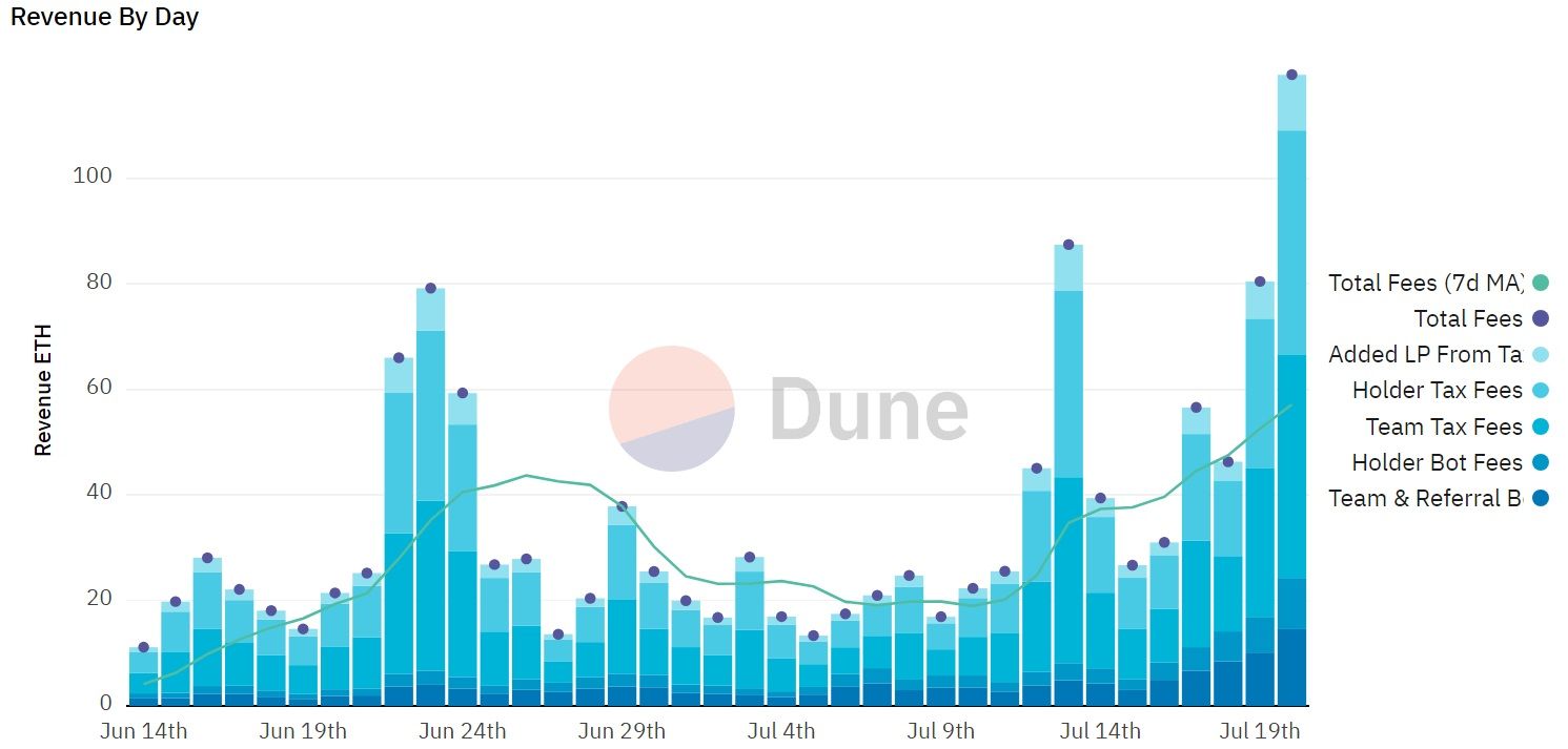 It has over 3,600 unique users and produced a revenue of roughly 296 ETH on July 20. The annualized holder APY of Unibot stands at around 27.39%, and the bot trading volume is about $4.8 million.