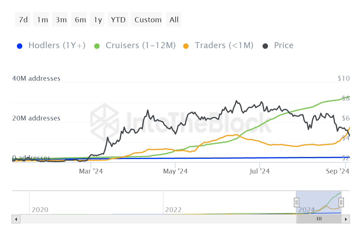 New investors have flooded the Toncoin market, seizing the opportunity to buy at discounted prices. The share of short-term holders has increased significantly, rising from 23% to 33% in a short span.