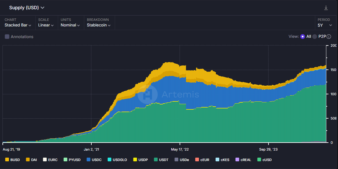 Meanwhile, the stablecoin industry has become increasingly lucrative, with the total supply surpassing $160 billion for the first time in over two years, nearing all-time highs. Tether’s USDT dominates the market, generating revenues of $93.75 million. Circle’s USDC follows with $28.89 million.