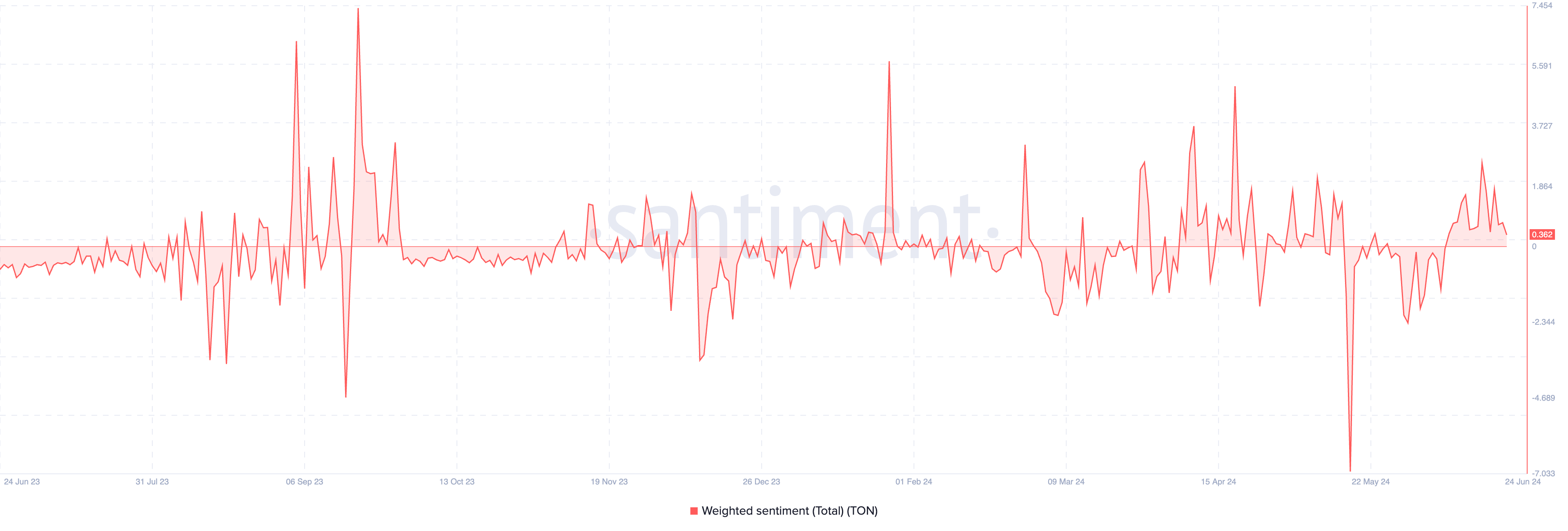 SponsoredThe coin’s weighted sentiment is positive at press time, confirming the bullish bias toward TON. Above zero, its current value is 0.36.
