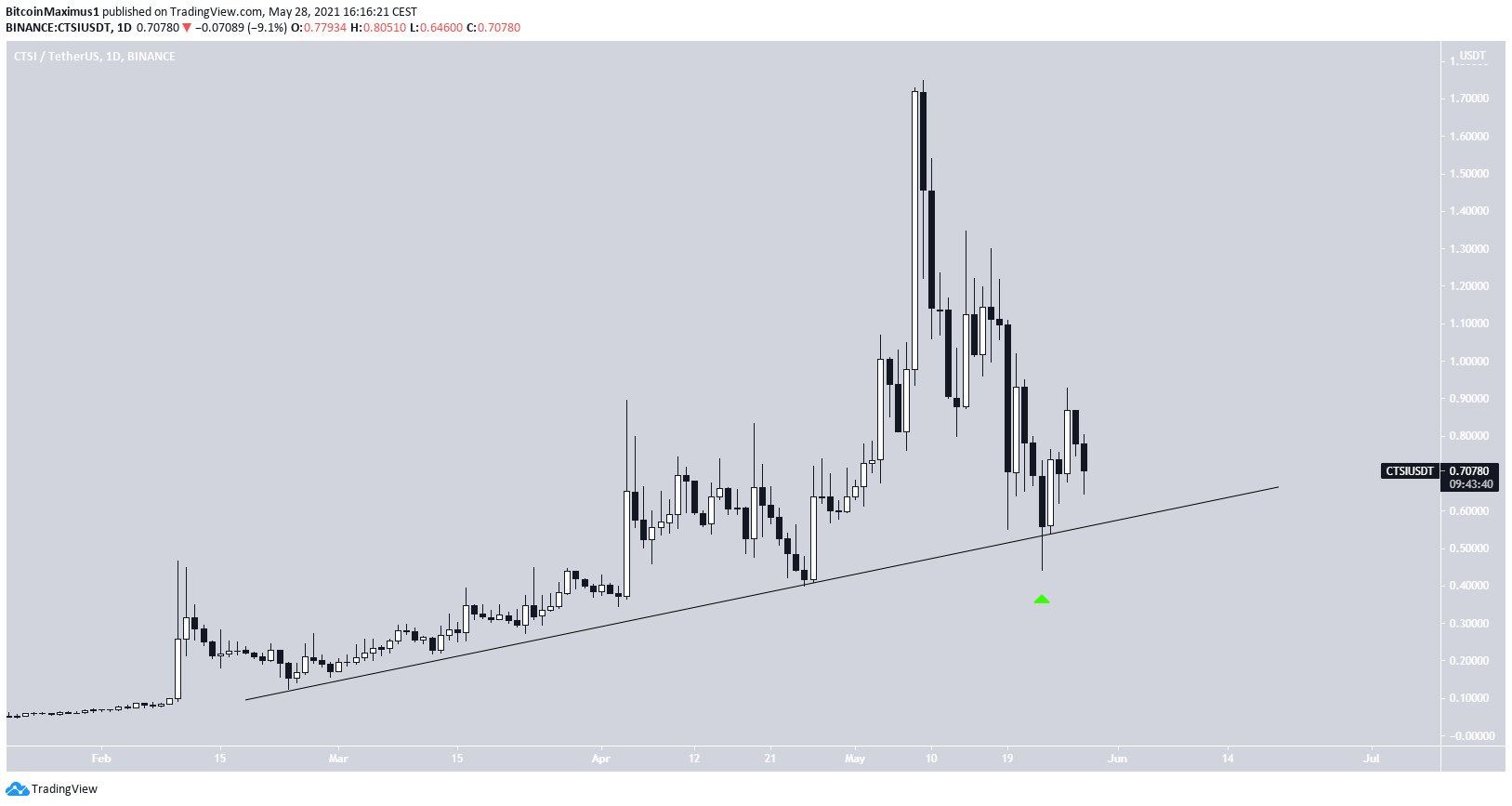 Sponsored SponsoredCTSI has been following a descendingsupport line since Feb. 21. It touched this line for the fifth time on May 19 and initiated the current bounce.