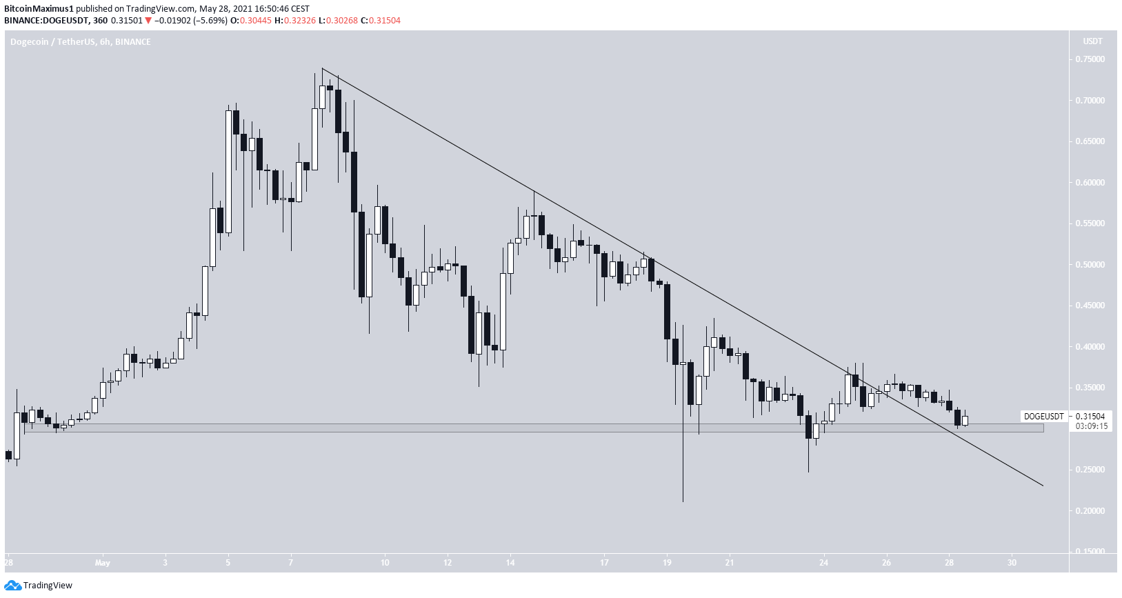 However, an upward movement followed and DOGE managed to break out on May 26. Currently, it’s attempting to initiate a rally above the $0.30 support area.