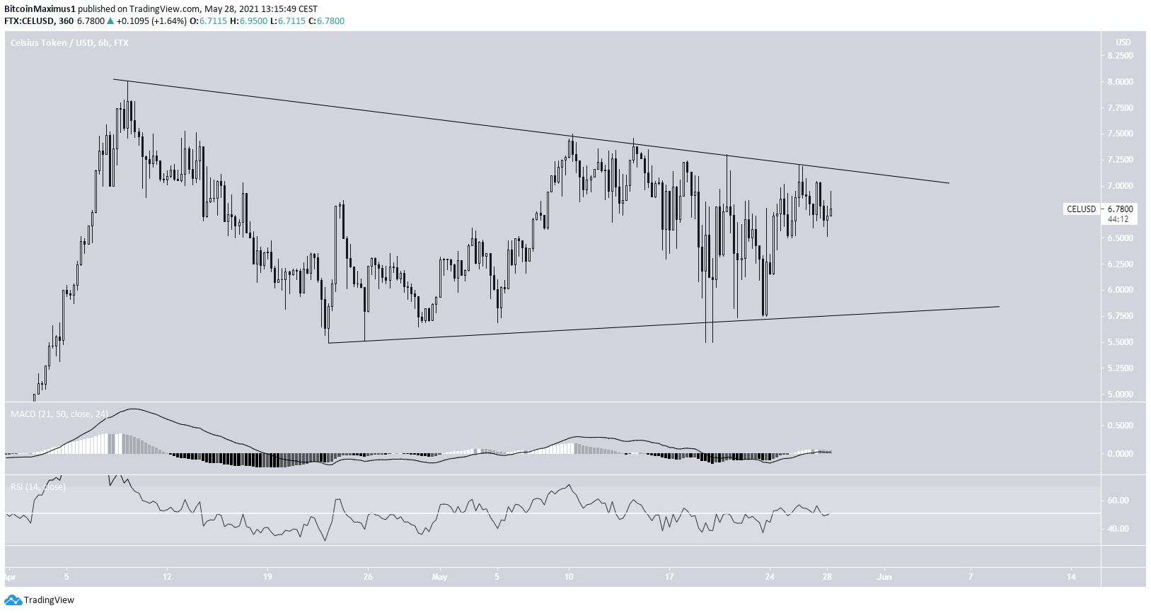 CEL is trading inside a symmetrical triangle. It has been doing so since April 9 and has validated both the resistance and support lines. The symmetrical triangle is considered a neutral pattern.