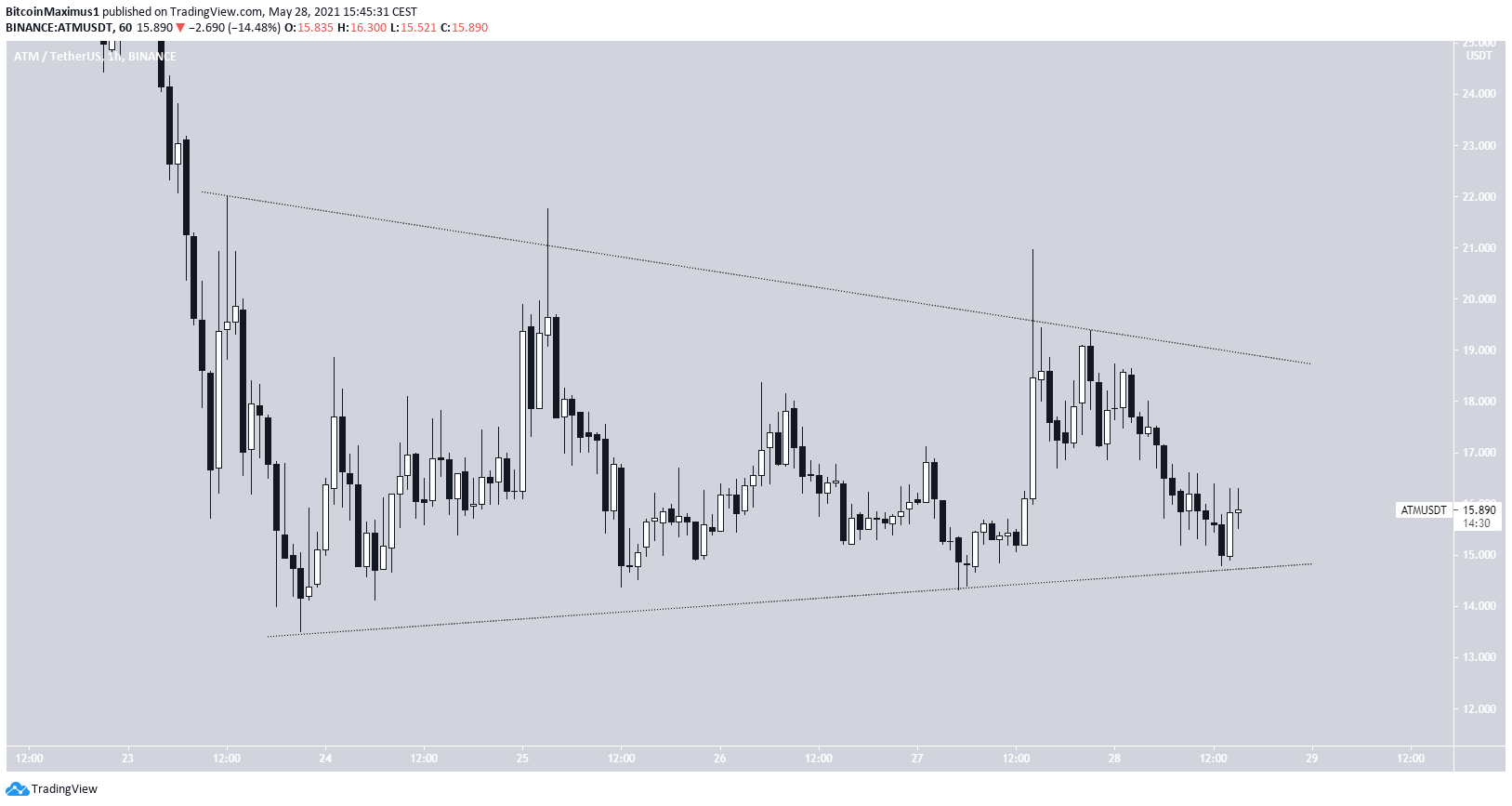 The token has been consolidating in a range between $15-$21 since May 23. In addition, there is a potential symmetrical triangle in place.