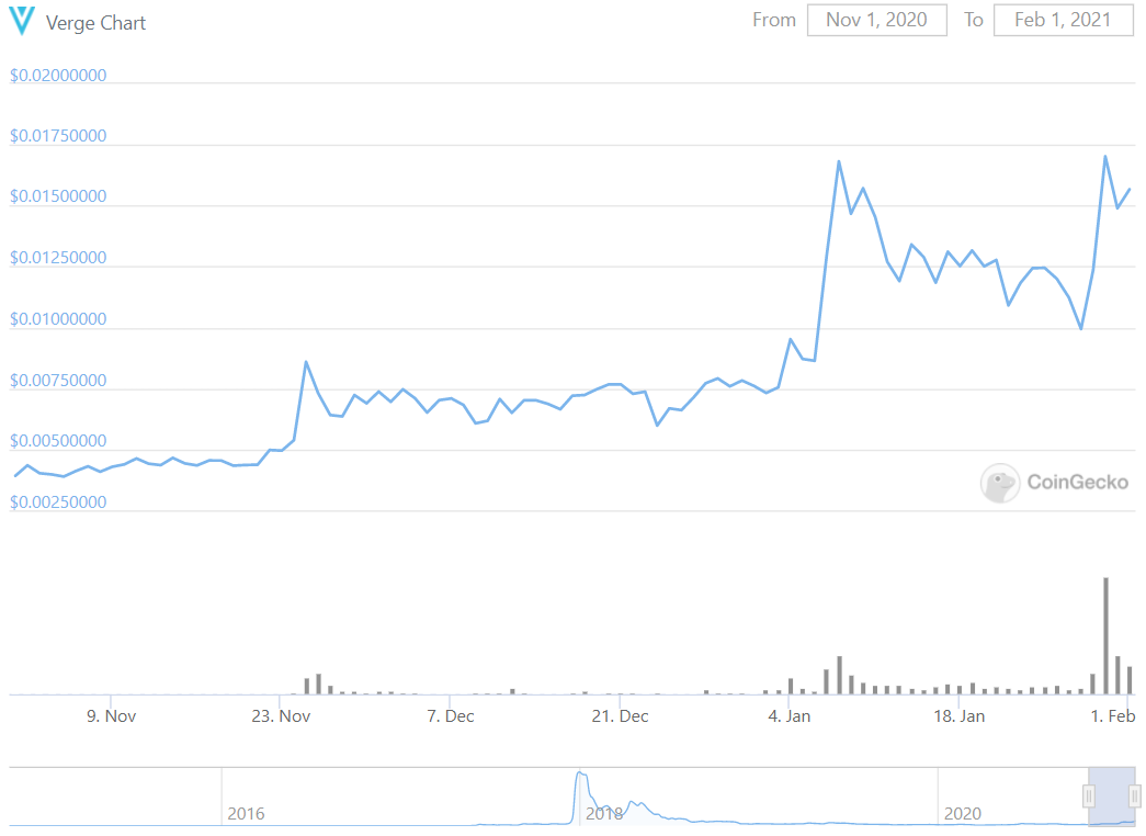 Similar to SXP, XVG is a small market cap coin, also having a tiny price of only $0.01.