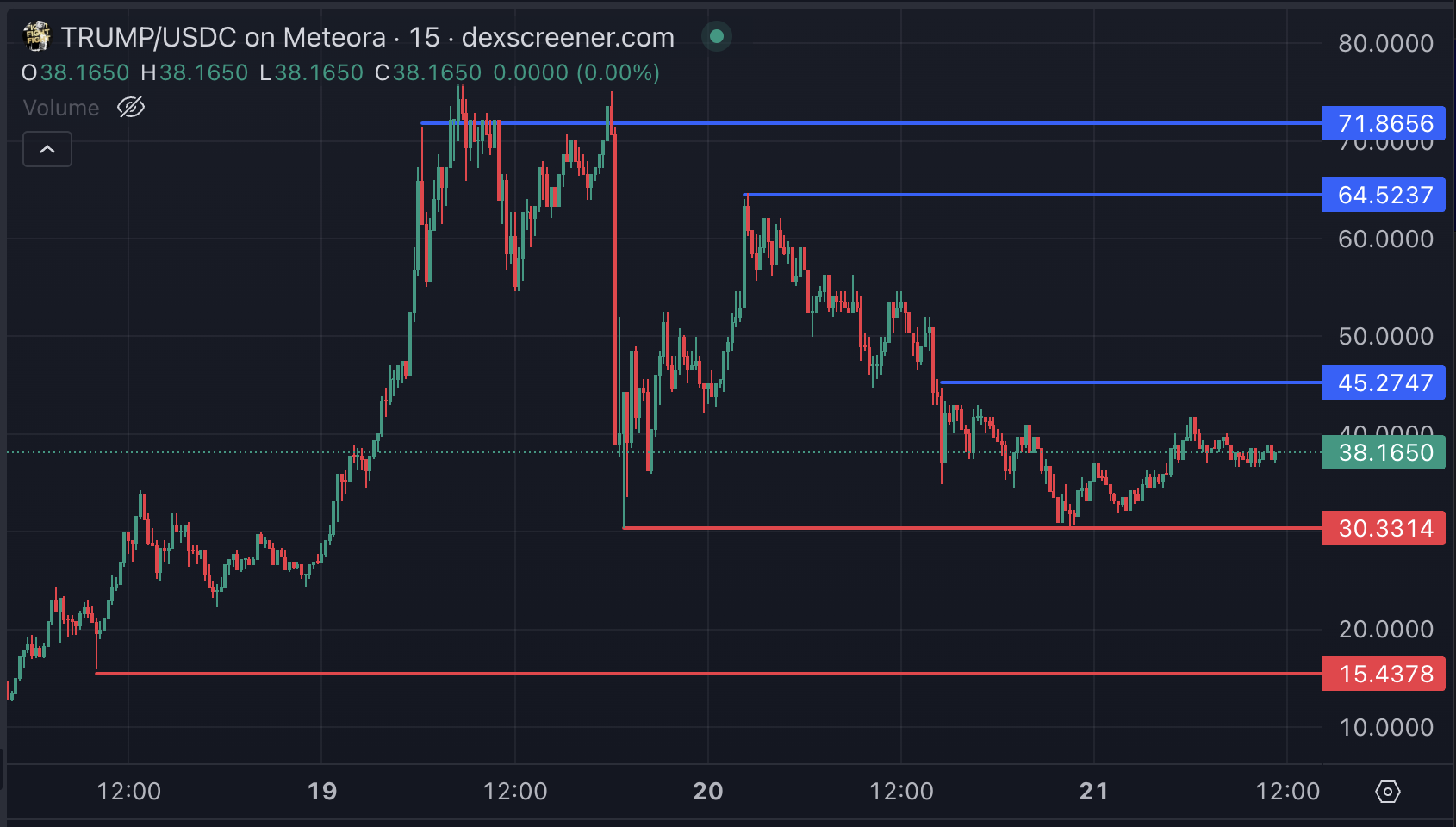 TRUMP is currently trading in a range defined by resistance at $45 and support at $30.30, reflecting a period of consolidation. If the token regains its uptrend and positive momentum, it could test the $45 resistance level.