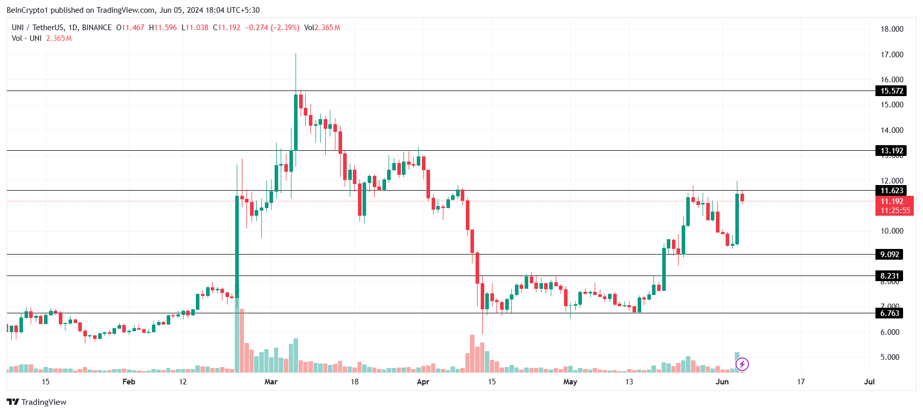 Breaching this barrier is important as it would enable UNI to reclaim $12 as support and head towards breaking past $13.1.