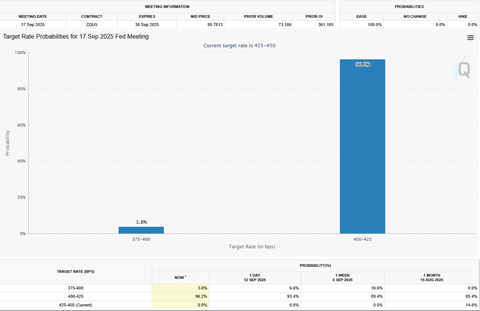Meanwhile, data on the CME FedWatch Tool shows markets are pricing in a 96.2% chance that the Fed will leave interest rates unchanged.