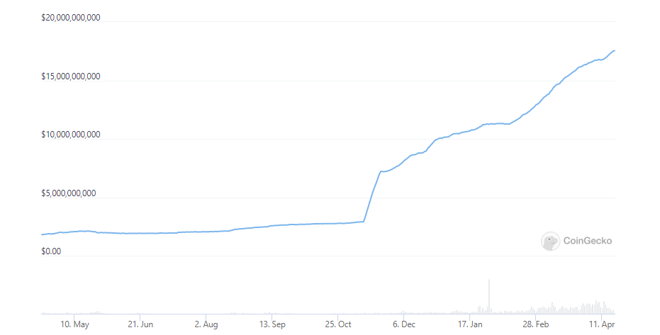 The TerraUSD (UST) stablecoin, a product of the Luna ecosystem, has surpassed the Binance USD (BUSD) in terms of market cap to become the third-largest stablecoin. With a market cap of $17.5 billion, UST is now only behind Tether and USD Coin, which have market caps of $82.8 billion and $49.9 billion respectively.