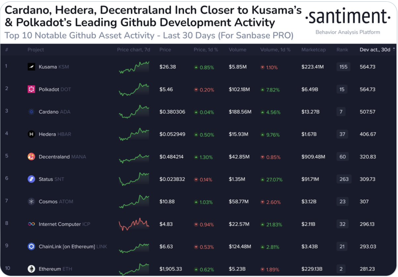 Cardano’s struggles to carve a market niche are over. The network’s developer activity now ranks third, seven positions ahead of Ethereum.
