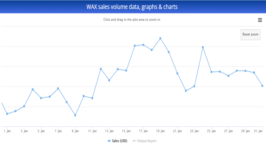 January 2022 saw WAX NFTs sales volume of approximately $20.87 million.