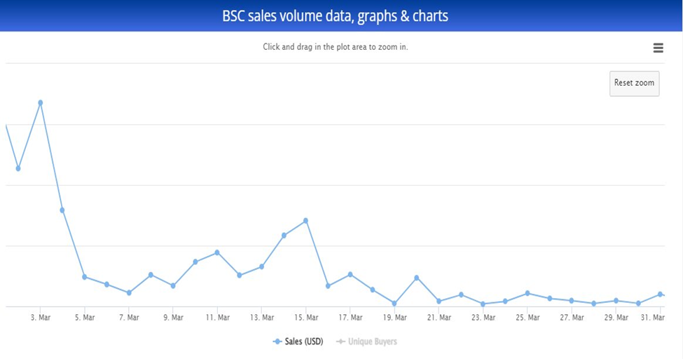 NFT mania took hold of the decentralized finance space in the first quarter of 2021. This saw Binance Smart Chain reach an all-time high in NFT sales volume in March 2021 after generating approximately $1.04 million.