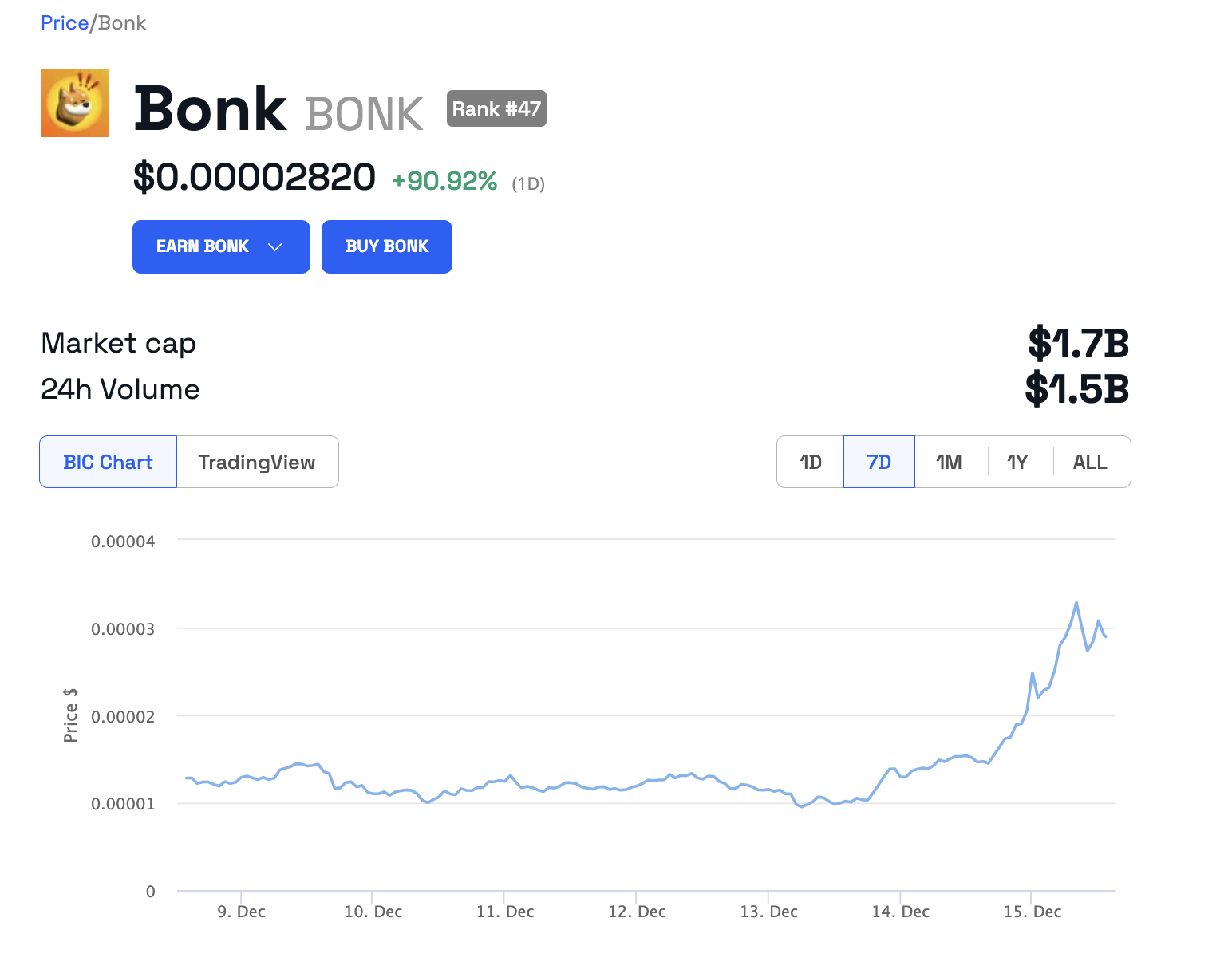 However, Solana’s meme coin – BONK, was the center of the attention.