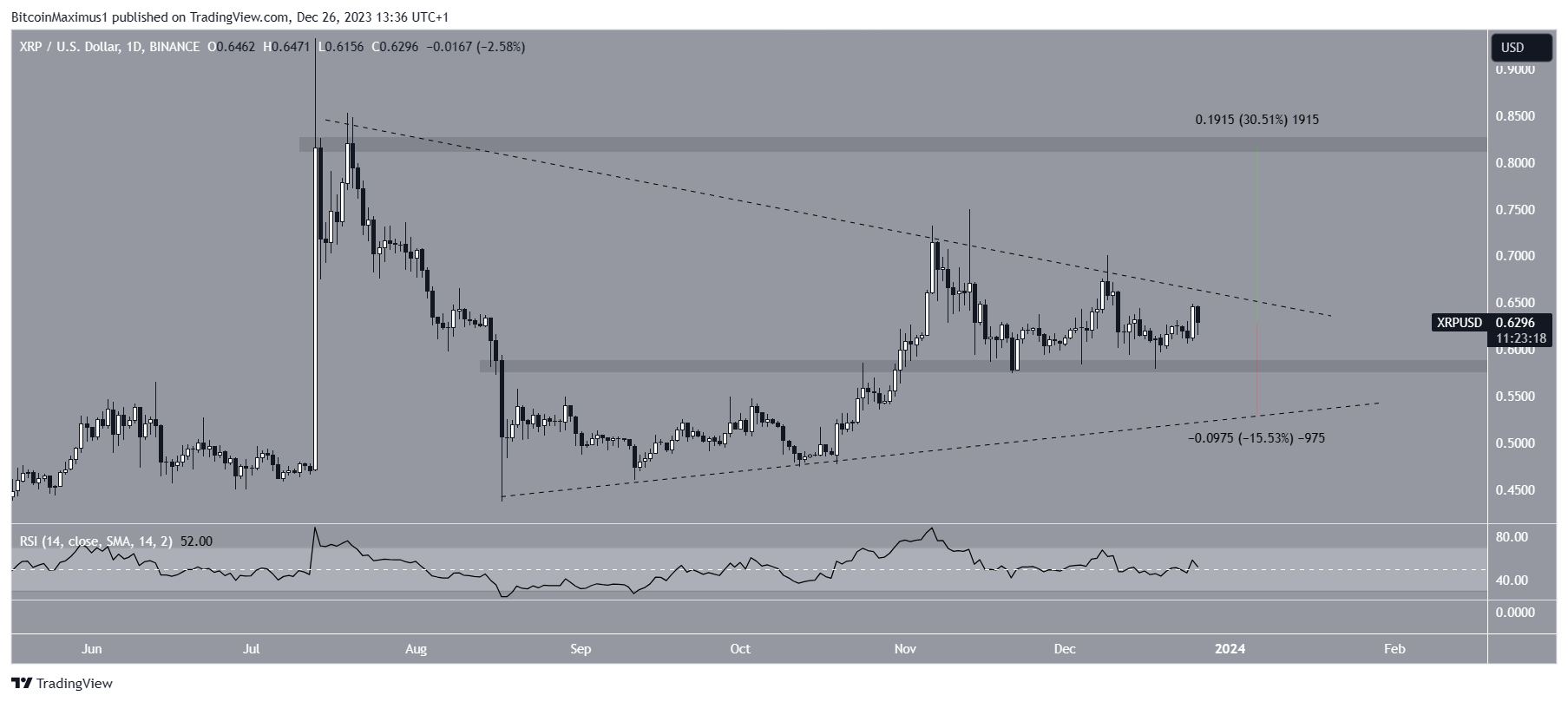 However, the RSI is at 50, indicating an undetermined trend. It is also worth mentioning that XRP whales recently accumulated 360 million XRP tokens.