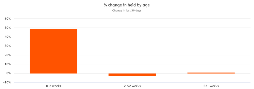 Sponsored SponsoredMeanwhile, the amount of holders of BTC for between two and 52 weeks has decreased, but the number of new holders with BTC for up to two weeks is up by 48%.