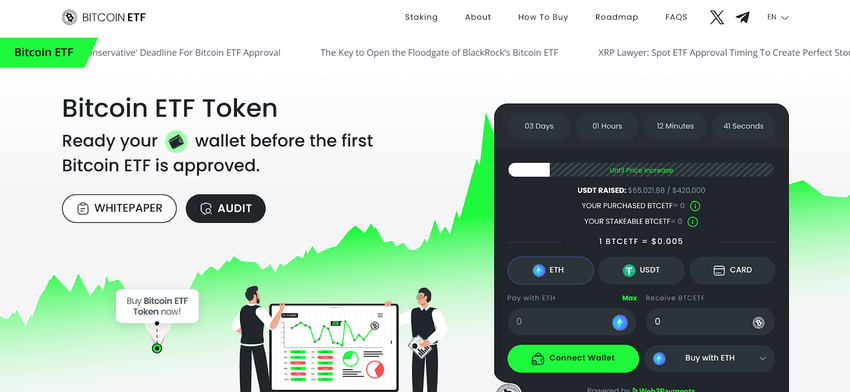 Meanwhile, the new Stake-to-Earn project Bitcoin ETF Token (BTCETF) boasts tremendous upside potential, having only launched as a presale on Monday. The presale is currently in round one, priced at $0.005, but this price is set to increase in three days.