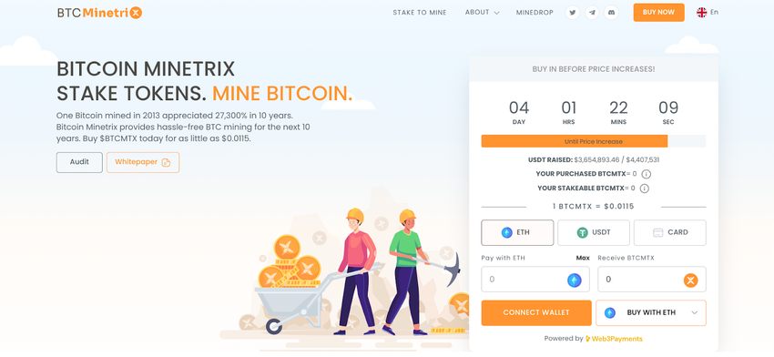 The project features a Stake-to-Mine mechanism, enabling users to mine cloud Bitcoin by staking BTCMTX tokens on its Ethereum-based platform.