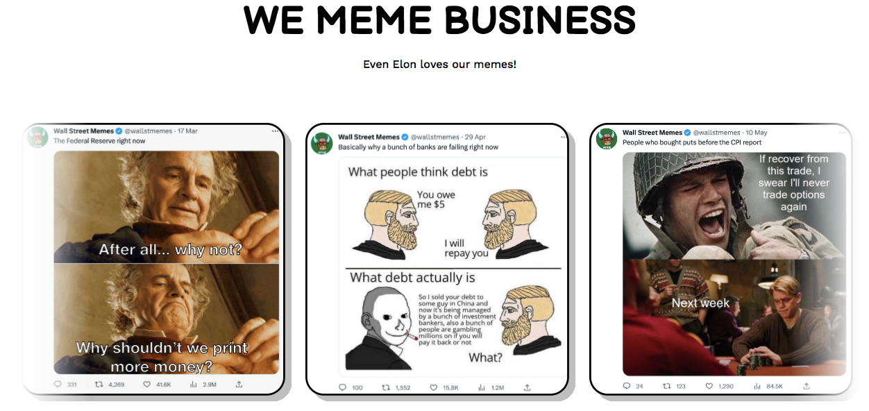 Unlike other new meme cryptos such as Pepe and Milady, Wall Street Memes is an established group with a community of over 1 million members. This group has existed since 2019 and has seen influential celebrities like Elon Musk interact with its social media pages.