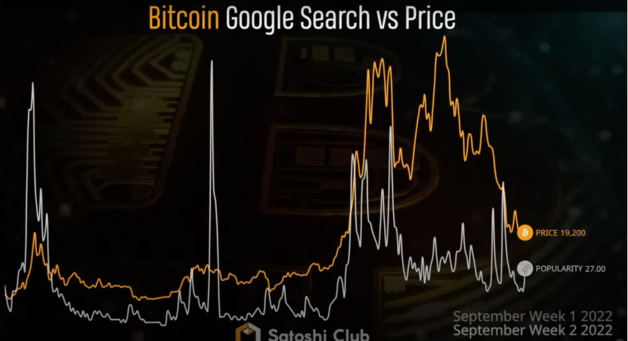 Google search trends still strongly correlate with BTC price movements. The graph below shows the past five years for BTC in terms of price vs. Google searches.