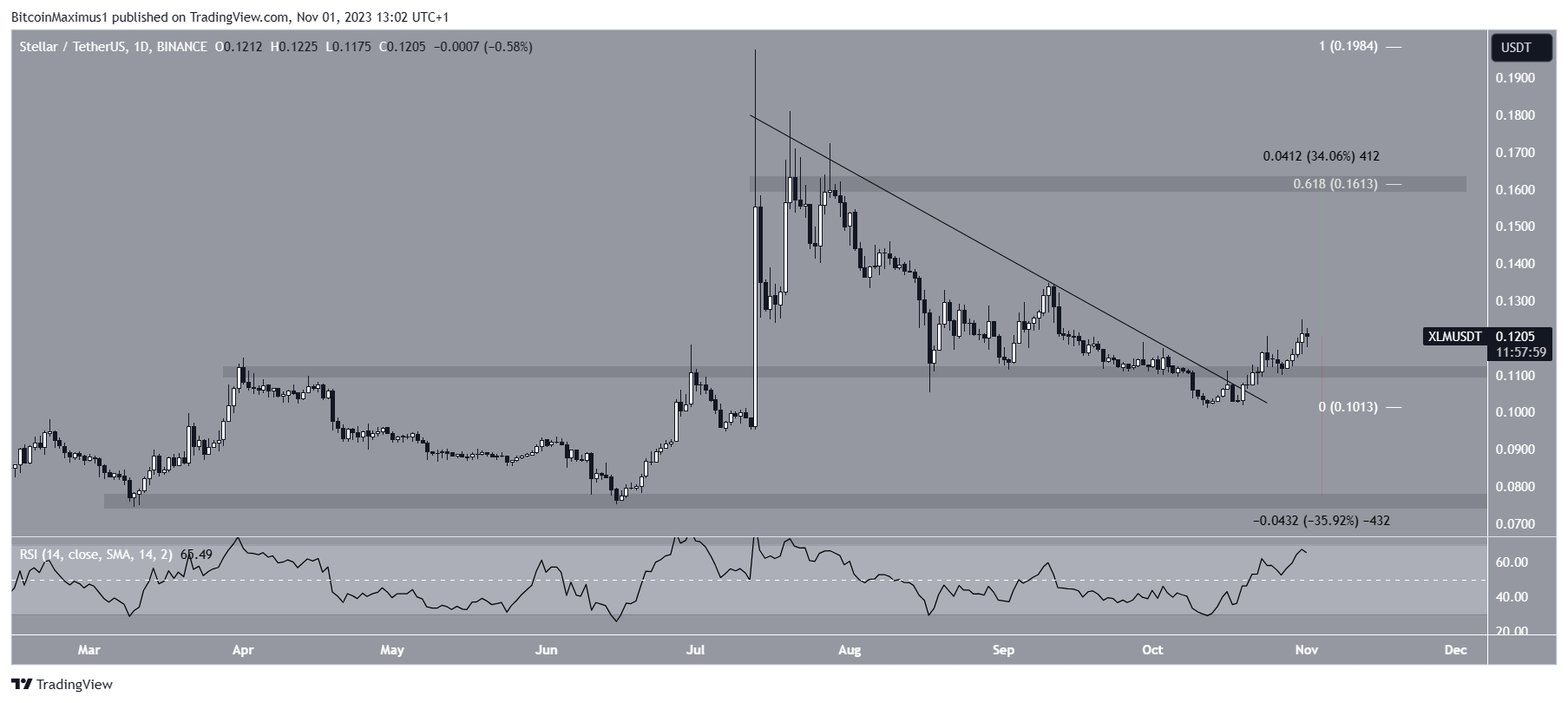 The Stellar price breakout led to a high of $0.137 on November 13.