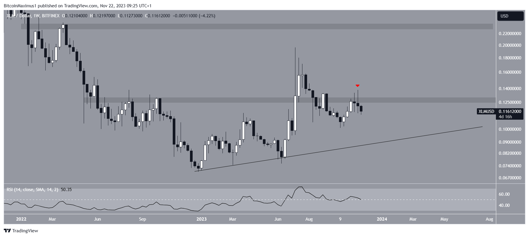 The weekly timeframe Relative Strength Index (RSI) for XLM gives an undetermined reading.