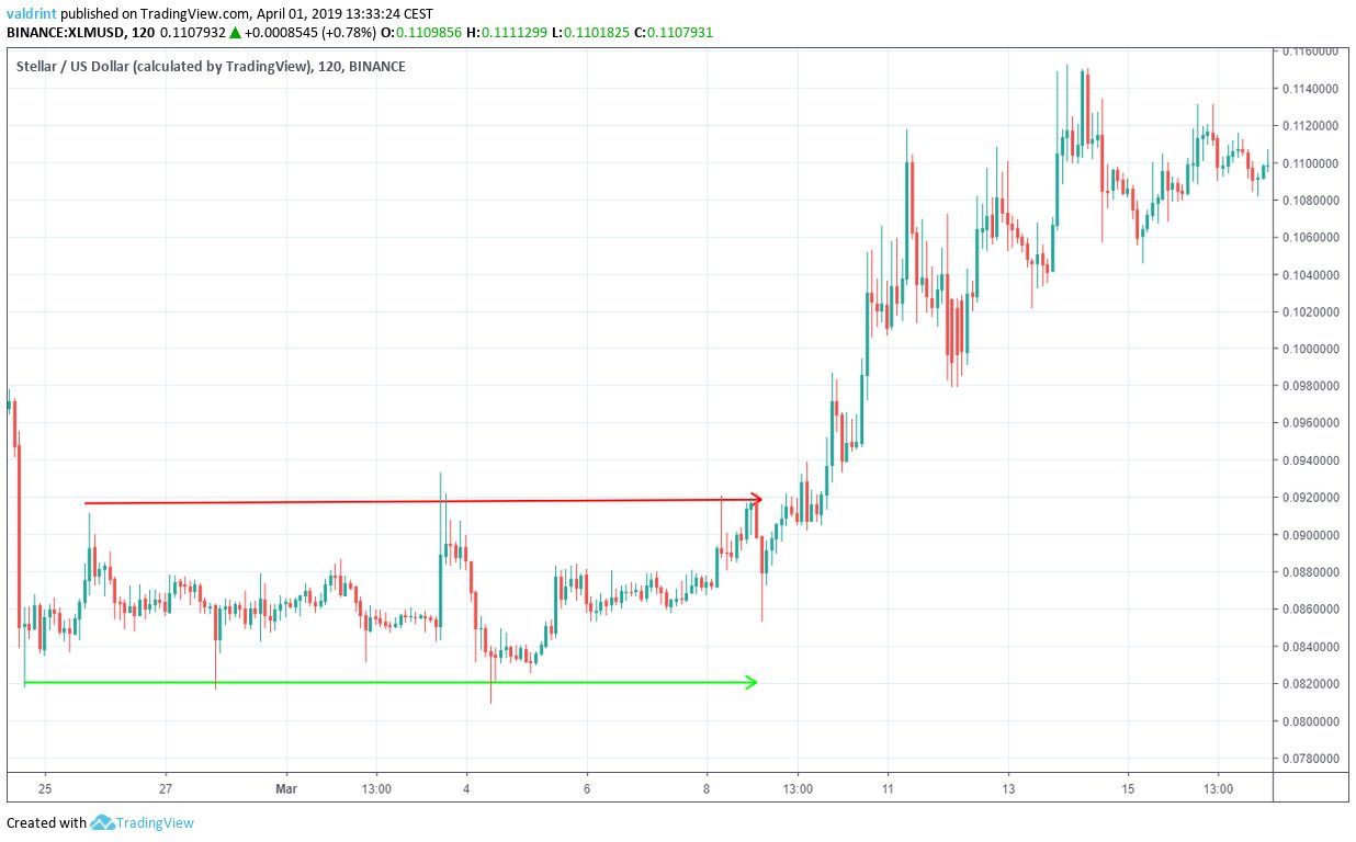 - Stellar lumens broke out from a horizontal channel on Mar 9.