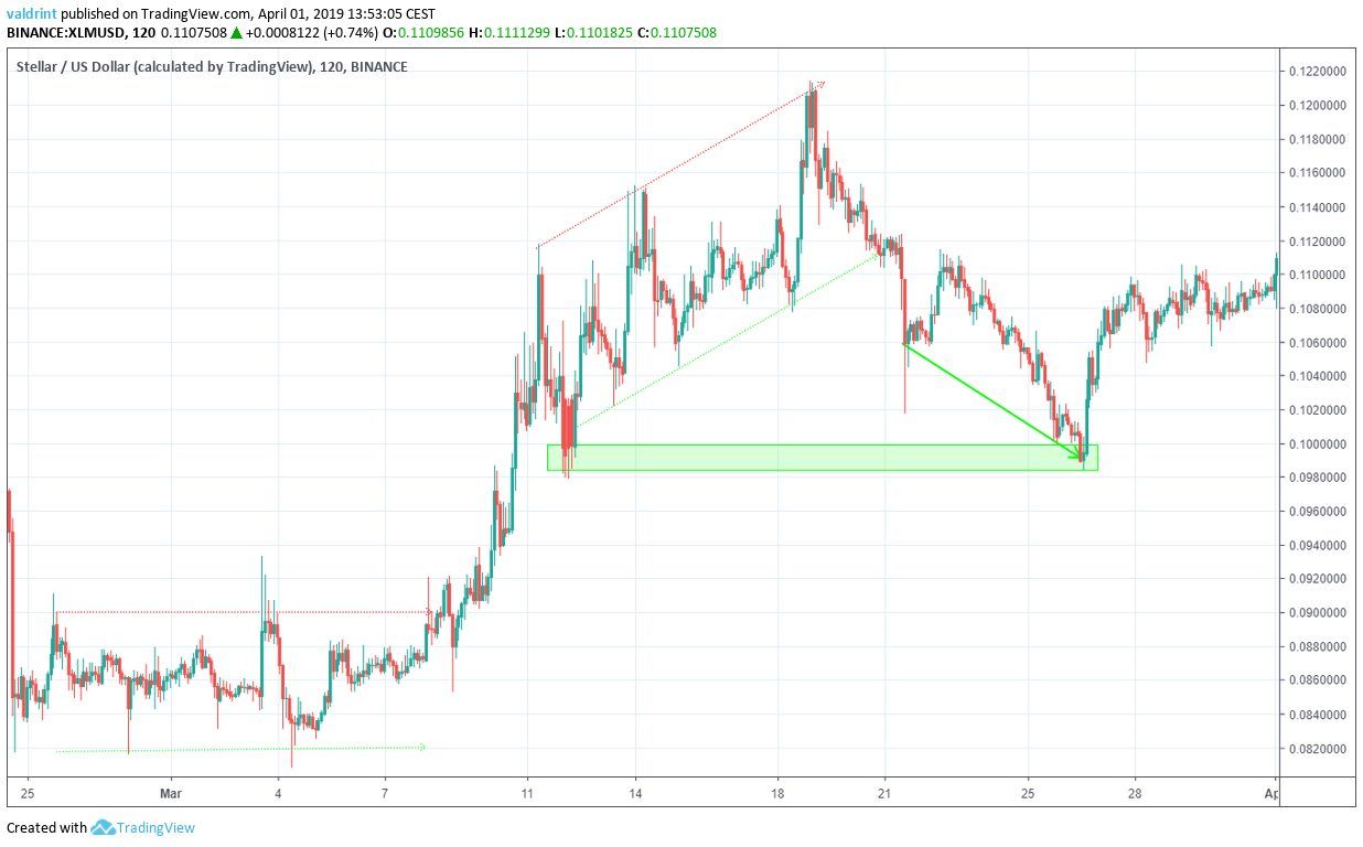 This breakdown was quickly followed by a reversal. Stellar Lumens now begins April 2019 on an uptrend.